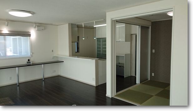 南道路の広い整形地で採光、採風とも好条件の敷地です。太陽光発電?も効率が良く、必要電力は全てカバーし賄っています。2階建てに比べ平屋建てはどうしても坪換算でコストがかかります。地盤調査から地盤改良、基礎工事は最も重要部分で、バランスとも優れた耐震住宅です。収納スペースが多い住宅で8帖の小屋裏収納も設けました。広いリビングに隣接する可動間仕切り引戸の和室は多用途で使う事ができます。床暖房の付いた洗面所とトイレは広く、各所に手摺を設置し高齢者等配慮対策等級3を取得しました。外壁はガルバ鋼板Kスパンでメンテナンスフリーの住宅です。